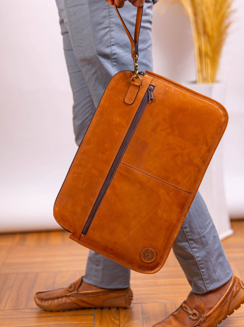This laptop sleeve is made from smooth, full-grain leather in a warm tan that ages beautifully with use. It’s available in both 13" and 15" sizes, so whether you're travelling light or carrying a bit more, it’s got you covered.